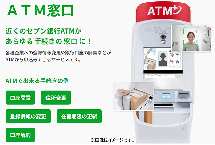 これまでは対面であった本人確認や紙の書類による手続きを、全国にあるセブン銀行ATMで「いつでも」「どこでも」「簡単に/安心して」「手数料無しで」行うことができるインフラを提供している。セブン-イレブン店舗に約23,000台、商業施設・駅・空港・病院などの他の施設に5,000台、計28,000台以上を展開する。移動ATM車両のイベント・被災地への派遣も行う。国内ATM初となる犯罪収益移転防止法対応の本人確認手続きも可能。