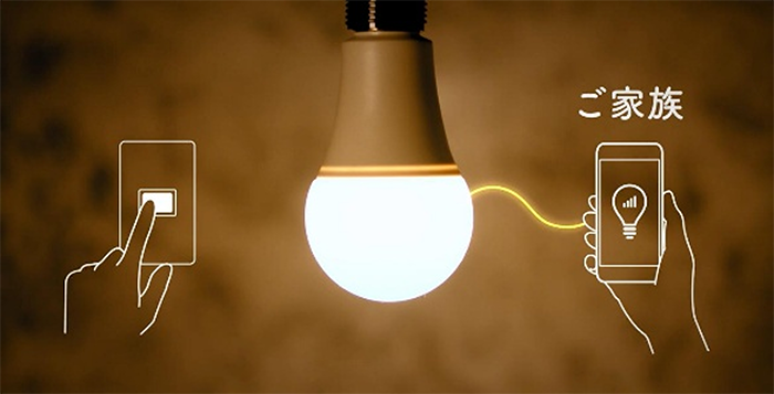 IoTの活用イメージ。別居する家族の見守りサービスに活用されている。照明のスイッチを押せば、家族のスマホに通知される