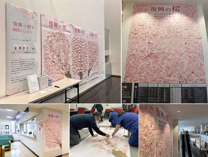クラウドファンディングでの応援メッセージ数は約2,500。利用者や職員からの感謝メッセージも約2,500に及ぶ。寄せられた応援メッセージを「復興の桜」と名付けて病院内に掲示する