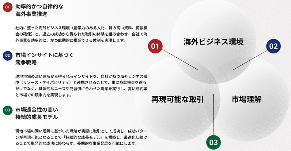 海外営業ノウハウを蓄積し、サービスの基盤とする