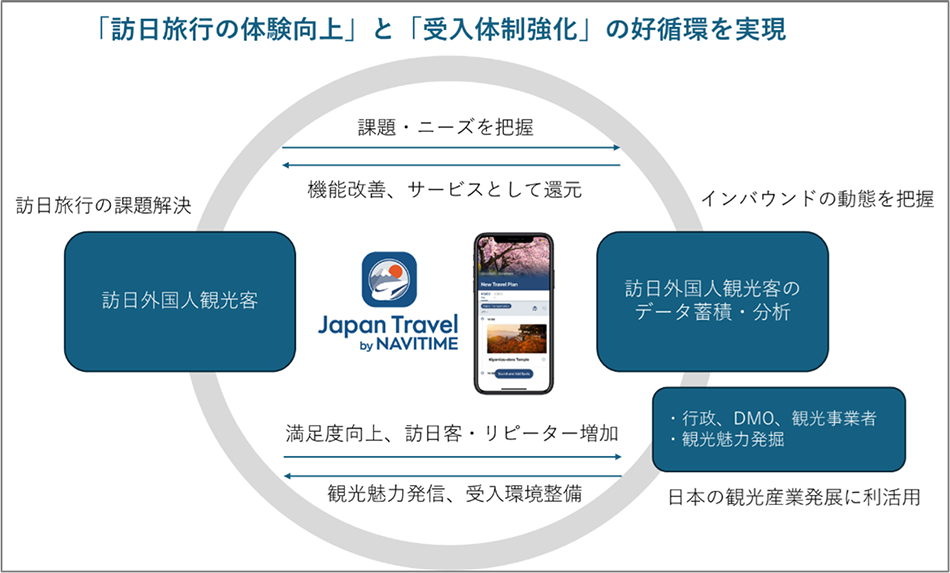 これらの蓄積したデータによる正確なルート案内をインバウンド向けに提供すべく、2013年に訪日観光客向けアプリを開発。2017年にJNTO日本政府観光局の公式アプリに採用される。2019年より「Japan Travel by NAVITIME」の名称でサービスを展開。