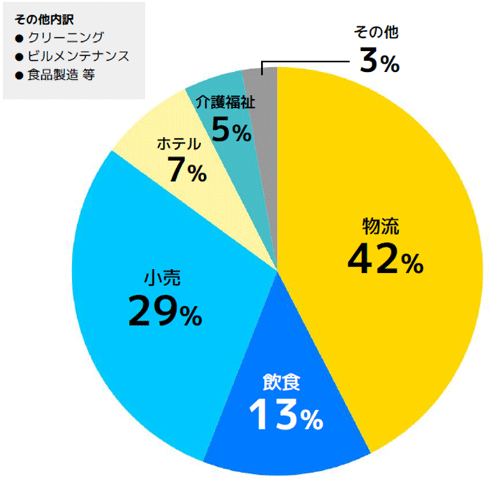 雇用主の属性。募集業種で多いのは物流(軽作業)、小売、飲食(2025年10月の1か月間)組織データ