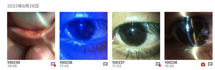 撮影画像の例。専用アプリによって、スマホからでもパソコンからでも画像を一括閲覧/管理できる。眼科専門医による遠隔での画像を用いた相談も可能組織データ